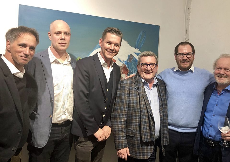 De gauche à droite : François Léveillée, Michel St-Germain et Simon Naylor, de Viridis, Régis Labeaume, maire de Québec, Jérôme Dupras des Cowboys Fringants et